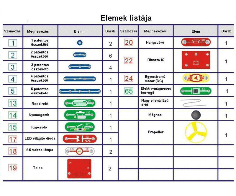 Az alapkészlet az iskolában és otthon egyénileg is használható. Az összes darab patenttal kapcsolható össze az alaplapon. Egy áramkör átlagosan 2 perc alatt állítható össze. A kézikönyvben minden áramkör le van rajzolva, ami a készlet darabjaiból összeállítható. Minden egyes darab színes és számmal ellátott, ezért még a fiatal gyerekek számára is könnyen követhető, hogy az áramkörrajzokon melyik darab hova való. A kézikönyv diagramot és áramköri szimbólumokat is tartalmaz, ezért a diákok hamar megtanulják, hogyan kell megérteni és alkalmazni az áramköri ábrákat.