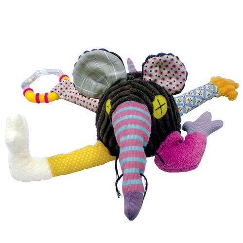 Különböző szövetekből, finom anyagokból álló rezegni, vibrálni képes figura, emellett nyomkodásra csörög, zizeg, sípol...felfedezésre vár.